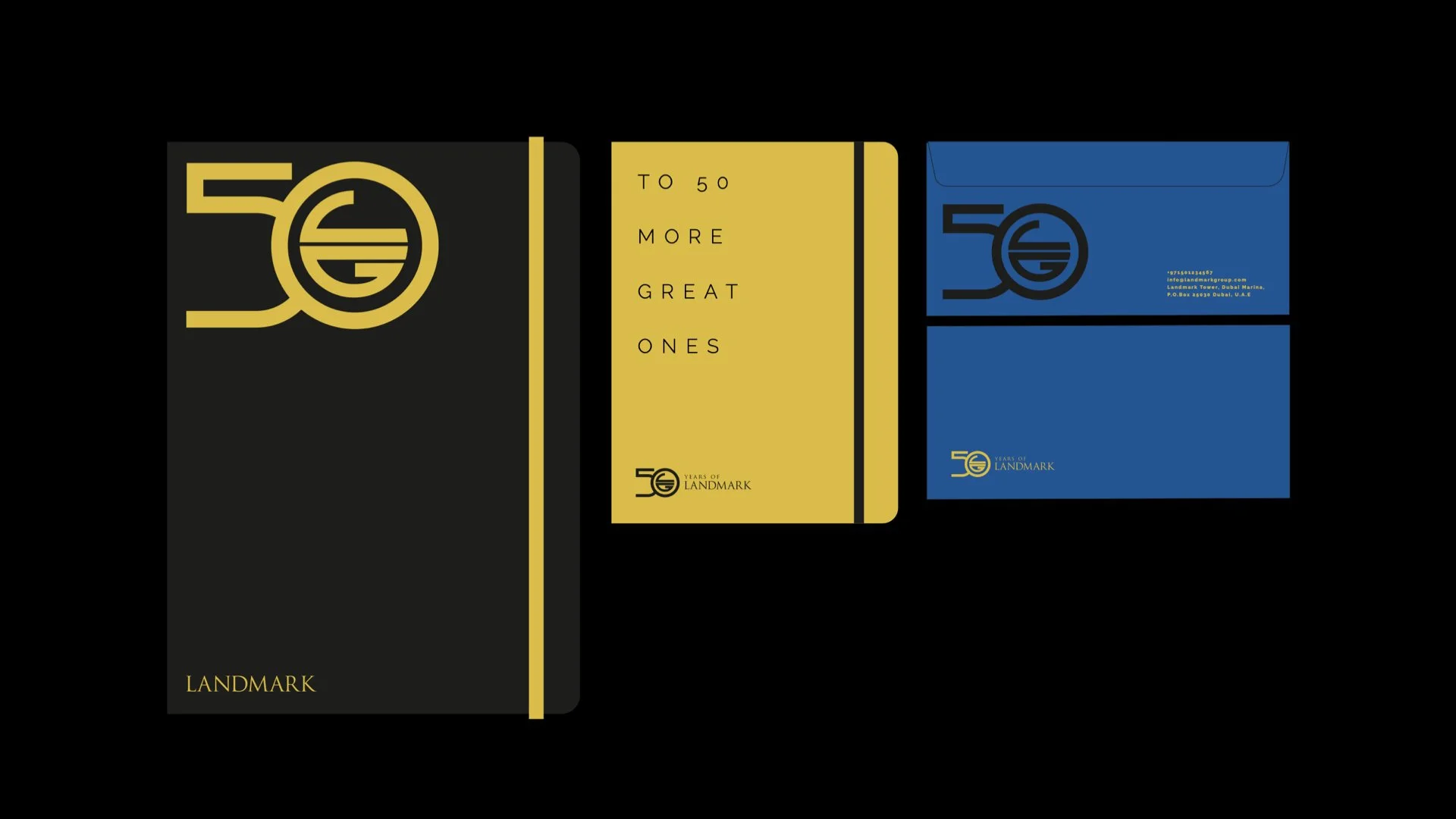 Brandmark lock-up and visual system for Landmark Group’s 50-year anniversary.