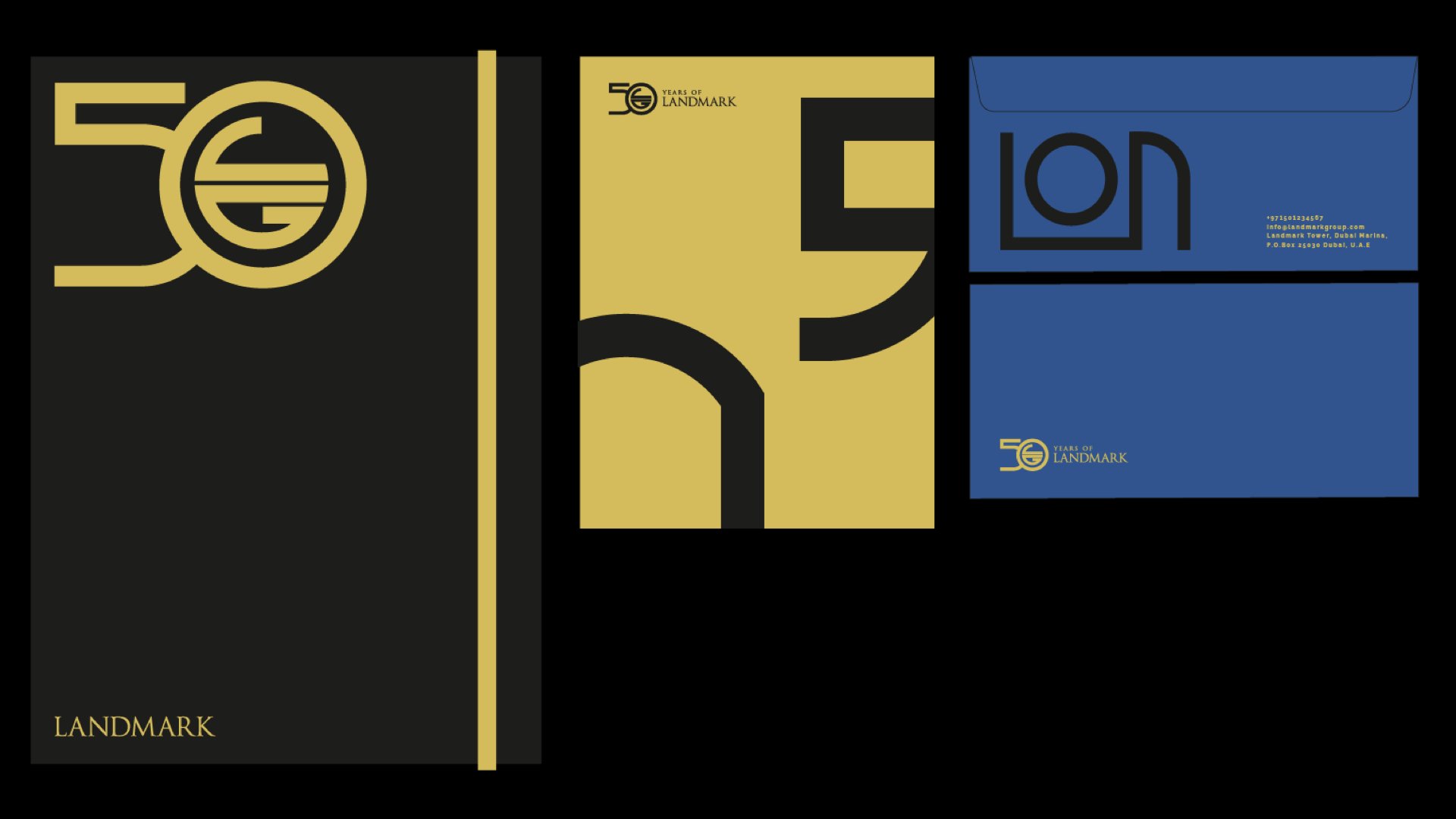 Using the Landmark Group emblem as the foundation, we developed a modular grid system that allowed the anniversary mark to evolve across applications while remaining unmistakably part of the brand.Rather than treating the “50” as a static symbol, the system explored multiple interpretations within the same framework, varied in form, consistent in spirit. The approach created a dynamic visual language that could extend across iconography, stationery, apparel, and communications, supported by a refined color palette and premium execution.
